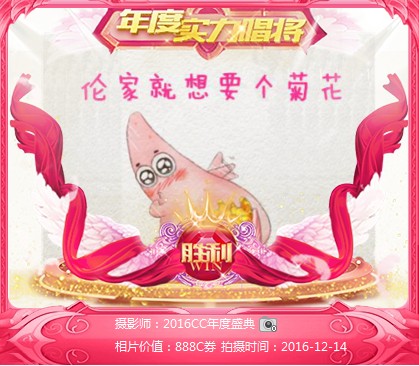 2016年12月1日,CC为期一个月的年度盛典活动开始了,各大主播,财团,游客都纷纷的投入到这一个紧张的活动中,如今,2017年的钟声已经敲响,2016年年度盛典活动正式结束了,各大奖项纷纷揭晓最终的答案。