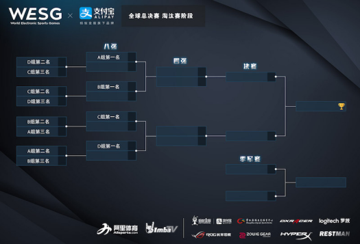 WESG全球总决赛一共拥有《反恐精英:全球攻势》(CSGO)《DOTA2》《星际争霸2》《炉石传说》四个比赛项目,比赛以小组单循环赛+淘汰赛的形式进行。每个项目的24位选手/战队平均分入四个小组进行单循环赛直至决出各小组前三名。每个小组的第一名将直接晋级淘汰赛八强,二、三名将再进行一轮单淘,决出四个名额后与前者一同会师八强。