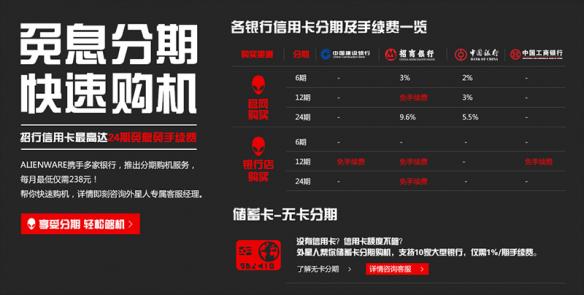 免息分期的支付方式一直是Alienware官网的首推,这点小编无需赘言。无论您购买Alienware13/15/17或高端台式机型,都能帮您快速解决。优惠价8999元的Aurora R5,每月仅需375元就可轻松到手,真心毫无压力!