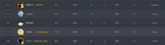 OB战队中奶哥哥以3295分排名第51位,成为了本届CDEC大师赛中OB战队的榜首,而钢琴手430也为本届CDEC大师赛贡献了52场比赛,虽然最终的排名不高,但是这样高强度的比赛依旧让430将会复出的传言变得更加真切。