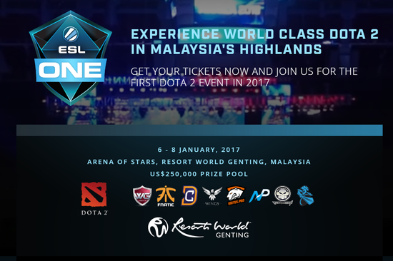 这是ESL One首次将比赛场地选定在马来西亚。届时,将有三支直邀战队(Wings、DC、Fnatic)与五支预选赛晋级战队进行激烈角逐,比赛采用小组赛及BO3单败(决赛BO5)赛制,八支队伍将争夺高达250000美元的奖金!