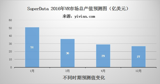 纵观整个2016年VR产业可谓是先扬后抑,从年初预计的大火到年末的寒冬,可谓是期望大于失望,这点从数据上有着鲜明的对比。数据分析公司SuperData显示:2016年全球VR总产值约为27亿美元。然而该公司曾在2016年1月份预测2016年VR市场总产值将达51亿美元,其中相差24亿美元。