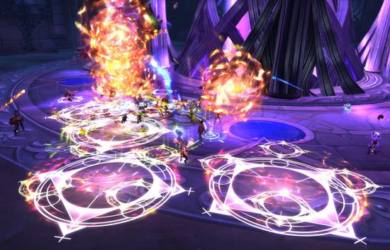 被点名的玩家应该留到debuff不足8秒再跑;当速度:快阶段有此debuff时,他们应该立刻跑。定时炸弹debuff会在临近爆炸时在玩家脚下制造一个频繁的脉冲效果,帮助你记得跑位! 时空爆发 时空爆发是一个简单的机制;时空畸体会标记数名随机玩家脚下的地板,然后向这些地方射出球。这会快速射出3波,每波5个球。