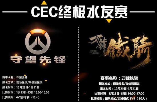 眼看年终已至,春节的气息承载着欢乐与激动环绕在我们身边。而这最后的年末狂欢月里,CEC也为大家带来了一场终极水友赛的狂欢派对!CEC2017大融城站全民水友赛即将于1.13——1.15在嘉定大融城举行,届时所有玩家均可到现场参与比赛,众多超级年终福利参与即送哟!