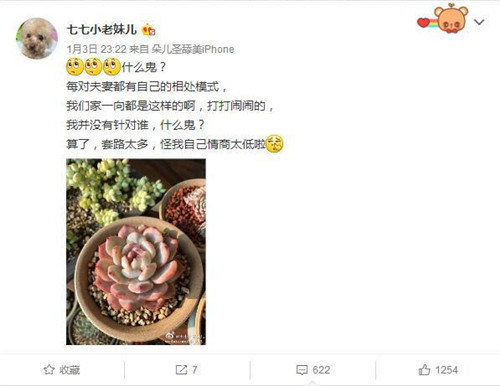 人红是非多,在明星面前永远都少不了键盘侠物种的存在,大可不必在意。勿忘初心,方得始终。每一个家庭都有每个家庭相处的模式,骚男和七哥一直喜欢打打闹闹。在大家的眼中骚男是个明星,而在七七眼中骚男就是他的丈夫。希望骚男和七哥一直就这样简单幸福下去,骚自己的路,让别人说去吧!