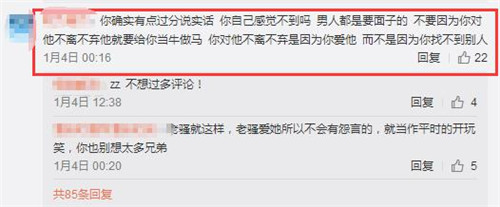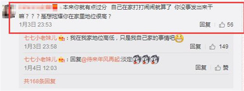 在大家一致认为七哥在大家面前花式秀了一场恩爱的同时,一些键盘侠打破了本该拥有的欢乐气氛,带起了节奏。“义愤填膺”的表示骚男是公众人物,七哥应该给骚男留面子,而不应该在家里专治,专治完全不留情面。有人认为七哥在家打打闹闹就好了,为什么要公示于众。甚至更有一些人表示家丑不可外扬,言语不堪入耳。