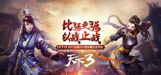 《天下3》2017全国3V3竞技赛强势来袭,本届竞技赛分为积分赛、淘汰赛及决赛三大阶段,只有一路上过关斩将、披荆斩棘,才能够有机会站在世界的舞台上与最强的对手决一死战!如果想要登顶大荒竞技巅峰,那更是要比强更强!要赢除了要有出众的操作技巧、风骚的移动走位,更重要的就是默契的团队配合,而作为一个追求绝对公平的竞技平台,本届赛事还特别新增了练习赛的板块,给各位玩家充足的准备时间去进行团队磨合!除了赛程和赛制外,不得不提本届竞技赛的终极大奖,珍贵时装坐骑,属于勇者无敌,更有小宠、称号,让你爽够2017!