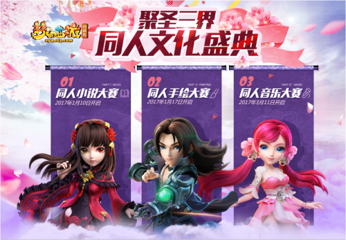 随着《梦幻西游》电脑版新资料片“聚圣三界” 1月3日开启外测,《梦幻西游》电脑版2017聚圣三界同人文化盛典也正式上线啦!本次大赛包含同人小说大赛、同人手绘大赛和同人音乐大赛三大赛事。在这里,你可以挥洒笔墨展现你心中的梦幻故事,以妙手绘出心中的梦幻画卷,也可以高歌一曲打动各位玩家的心!