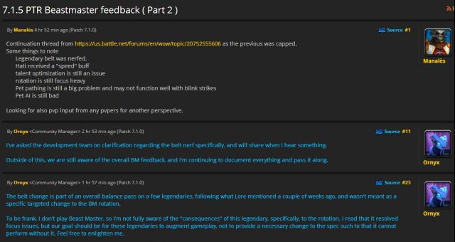 兽王在PTR上线了一些变化,目前在兽王的反馈集中帖(PART2)中,有提到这些: