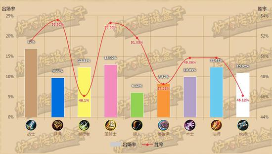 国服龙争虎斗加基森更新有过了一个月,各职业胜率到底如何?感觉并不靠谱,让我们来通过多玩趋势看着数据来说话。