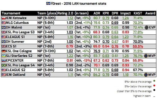 而即便是在NiP表现不佳的莫斯科震中杯和ECS S1联赛上,f0rest依旧是队内的主要火力输出点,在其他队员哑火的时候,他依旧可以站出来,用自己手中的武器给予对手重创。