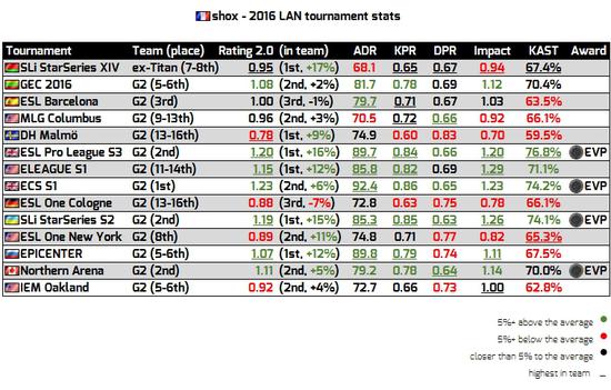 shox之所以未能破入前五,是因为G2在Major上的糟糕表现,shox在Major上的平均rating只有0.93。