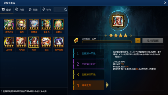 《英魂之刃》第一批开放觉醒的英雄包括:后羿、暗精灵、亚瑟王、森林之女、诸葛亮、福娃、温蒂、大天使、龙骑士、火神战姬。觉醒共分为4个阶段,前三阶段会提升英雄额外属性,最终阶段还将解锁全新觉醒“F”技能以及炫酷的觉醒头像,英雄战力将获得大幅强化,助你轻松赢得胜利!而觉醒的方式其实非常简单,只需消耗对应的英雄魂石即可。玩家可以通过魂石商店、魂石召唤的途径入手魂石,完成全新10V10模式也能获得免费的魂石兑换券。