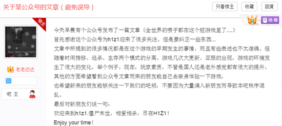 另外由于大量新人的涌入,百度贴吧也出现了很多老玩家的抱怨。为了避免新人被这篇文章带偏,贴吧吧主老老达达专门发了一个置顶帖,详细解释了一下这篇文章中存在的问题。