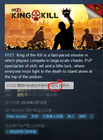 而常年占据Steam热销榜前十的《H1Z1》,其实一直都是个还在“抢先体验”阶段的游戏,目前并未发售正式版。但它以丛林法则为基础的规则,以及很高的自由度,让大量玩家沉迷其中。