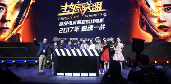 由迷宫电影、米粒影业、微影时代、国新南方与微赛电竞等国内多家影视公司共同出品,企鹅电竞战略支持的国内首部电竞题材院线电影《垫底联盟》于1月6日QQjoy舞台登台首发,这部改编于电竞明星小苍的真实经历,21位现实中真实存在的电竞明星倾情加盟银幕首秀的国内首部反应年轻一代心目中电竞赛场的电影,即将于2017年在全国院线大银幕公映,试水游戏电竞电影蓝海市场。