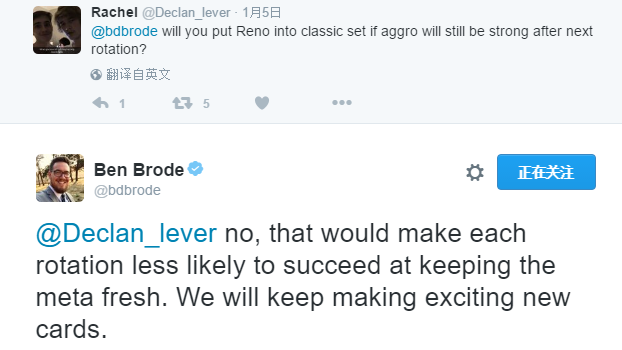 (玩家:Ben Brode,如果退环境后快攻依然猖獗,你会考虑把雷诺加入经典卡行列中吗?