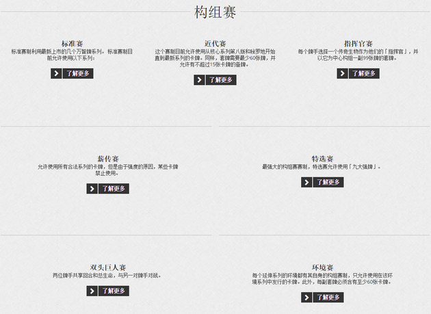 再来看看前辈万智牌,万智牌从1993年发展到现在已经超过20年,总共有两万多张卡牌,在主流的T2赛制(标准)之外,还有T1、T1.5(从万智牌发行到现在所有牌都可以使用,但有禁牌表,T1比T1.5禁牌要少)、摩登赛(可以使用十年来的所有系列,但有禁牌表)……主流之外的赛事虽然相对较少只占总赛事数量的20%,但官方对这些赛事也有维护。