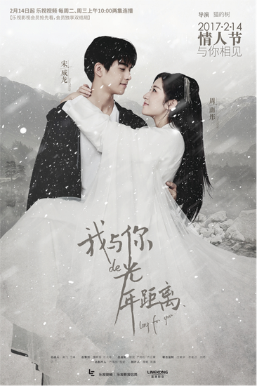 1月17日,蓝港影业发布了一组《我与你的光年距离》最新剧照和一支先导预告片。在这部精美的预告短片中,男女主角跨越千年相爱相杀的虐心桥段和六位主演扑朔迷离的人物关系得以率先曝光。这部超级网剧将定档2017年情人节在乐视视频独播,于每周二、三上午十点两集连播。