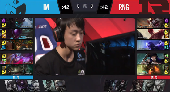 来到双方的第二场比赛,IM战队身处蓝色方,RNG战队身处红色方。BP方面,IM战队BAN了暗黑元首、虚空先知、寒冰射手、虚空遁地兽、飞天螳螂;祭出了上单扭曲树精、打野盲僧、中单王牌飞行员、ADC皮城女警、辅助锁魂典狱长均衡输出阵容。RNG战队BAN了傲之追猎者、青钢影、惩戒之箭、魔蛇女佣、发条魔灵;祭出了上单巨魔之王、打野机械公敌、中单流浪法师、ADC戏命师、辅助荆棘之兴的常规输出阵容。