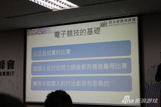 这次的演讲主题为‘从eSports到Esports(From eSports to Esports)’,陈柏寿说明:‘这句话是Riot从去年开始在内部提倡的事情,希望能将e改成E。通常e是指新的趋势,而我们想要正名,希望eSports不再是趋势而是一个真正的名词,所以使用Esports。’