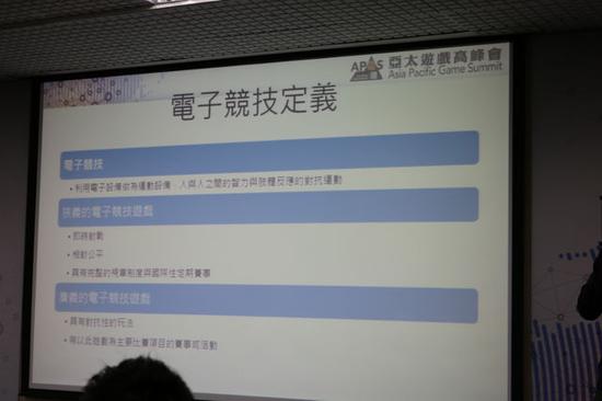电子竞技不是只有游戏开发商、玩家、代理商、选手,同时还包含了赛事执行(如活动公司)、内容制作(如宣传)等,甚至还有选手的明星经济、商务开发、电子商务等,另外还有一个最复杂的项目就是‘政府’,现在台湾许多政治人物也开始慢慢了解电子竞技。