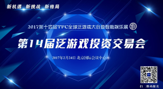IDG曾指出,2016年三大投资方向是人工智能、消费升级和泛娱乐。随着新兴领域的快速崛起,泛游戏行业的外延也得到了不断扩充。2017年2月24日,由上道主办的“TFC第14届泛游戏投资交易会”将在北京国际会议中心举行,作为TFC大会的重要组成部分,本届交易会将聚合30余家知名投资机构,贯通国内外游戏、智能硬件、泛娱乐、智能机器人等领域,以千亿资本强势加码,为泛游戏行业注入新生动力。