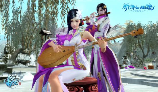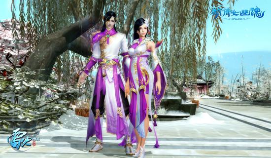 金珠碧玉飞鸿羽,紫衣罗裳舞红袖。新年属性时装[云锦殷罗]系列,包含4款怒气时装和15款属性时装。时装以白、紫、金三色为主,白底渐变锦纹,镶以紫绸、金饰。男款面部、肩部、腰身,分别以金龙造型,配碧珠紫带,尽显富贵飘逸气概;女款头饰、腰侧、鞋面镶以羽毛,金凤盘踞衣身,水袖缀以铃铛,裙裾轻飘及地,窈窕清扬。焕然一新,迎接新禧年吧!