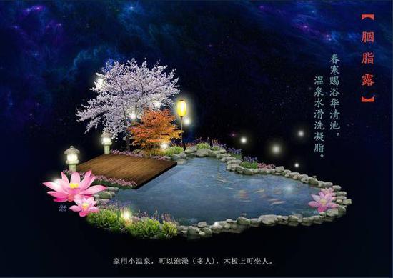 春寒赐浴华清池,温泉水滑洗凝脂。2016年12月集思录活动全服票选首款优胜作品“胭脂露”上架商城银两限时区。樱花点点、枫叶火红、睡莲徐开、亭灯微亮,拾阶而上,看池中水波粼粼清澈见底。不仅可以作为家园庭院中观赏的小景,还可温泉泡澡,最适宜这冷冬时节。这款由“点将台”服务器玩家“ゞ╃prince﹋小湉”设计的家用小温泉,将在游戏中得到完美复现!