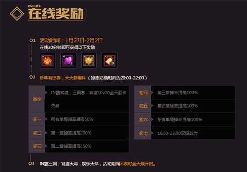 福兽入侵活动开启时间为1月27日-2月2日(年三十至初六)每天12:00点及20:00点开放,每次开放半小时。通关福兽入侵地图后,将有几率获得许愿签、新春趣味礼包、士兵卡、金蛋、神之武器打造书页等奖励!