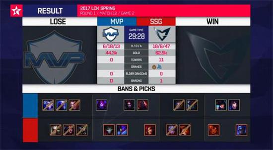 这局其实MVP在BP结束似乎就注定了结局,三星在对方选了一个Poke阵容后选了一个发条,然后进入MVP虽然打野率先中路Gank,拿下了发条人头但飞机却是先丢了一血,之后就进入了三星的完美运营中,三路带线完全不给MVP消耗的机会,比赛时30分钟,人头仅仅是3:2,但胜负已经很明显了,三星这边经济基本都集中在发条身上,而MVP都是脆皮,等到发条装备成型后三星开始团战,发条大到谁谁死,最终在MVP三路被破的情况下被三星带着双龙BF一波GG。