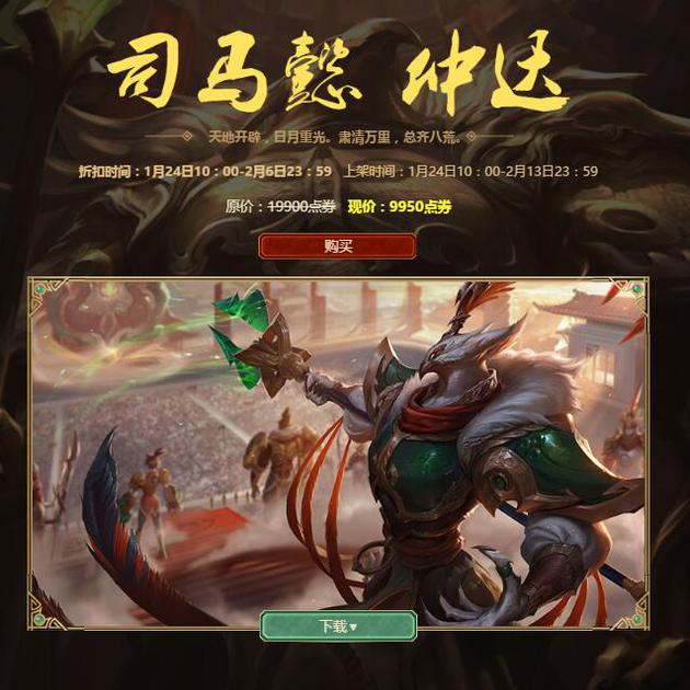 LOL鸡年限定皮肤1月24日正式上架,并且在前几日会有半价折扣,下面一起来看看张辽文远、司马懿仲达、虎痴之拳蔚三款鸡年限定皮肤的出售详情。