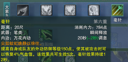 花间立足根本技能,不管是插旗还是竞技场,毫针是花间生存的主要技能之一
