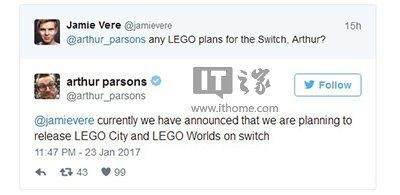 IT之家1月24日消息 之前报道,华纳兄弟发行的PS4版本的《乐高世界:成为建筑大师》公布了发售日期,游戏将于2017年4月6日上市。本作将同时推出实体盘和数字版,价格都是2980日元(约合人民币150元)。而今天,TT Games的首席设计师Arthur Parsons通过推特确认了本作还将登陆任天堂Switch平台。