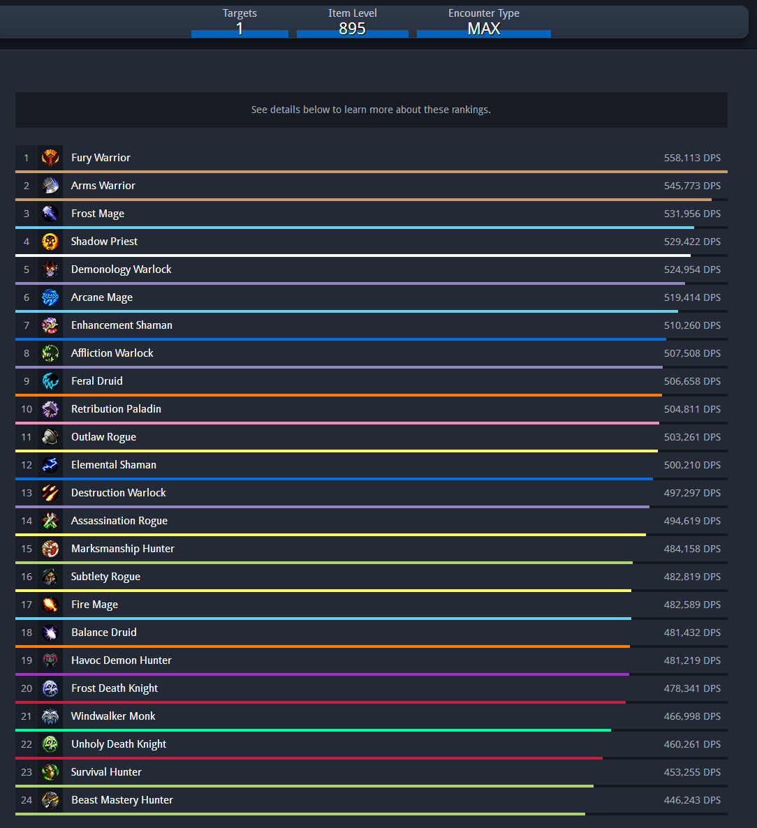 这是1月10日新的模拟数据,仅仅作为参考,它在试探每个职业的输出最大值,更多实战数据还要看WCL的职业综合表现。