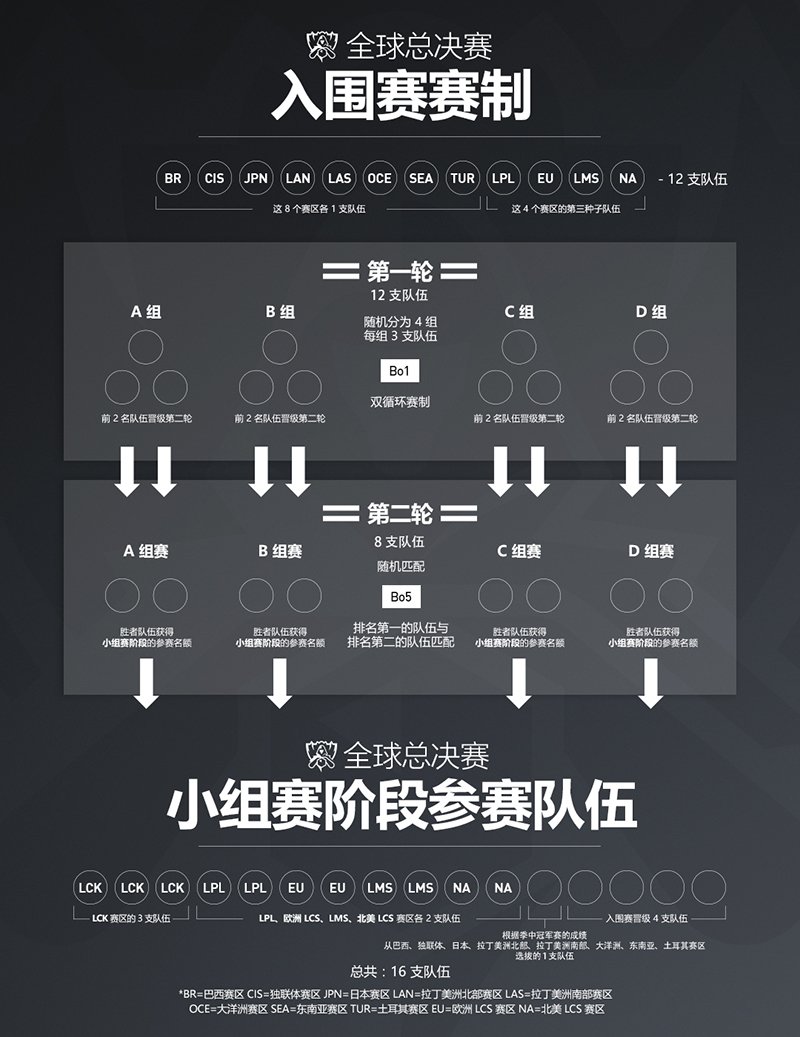 和2017季中冠军赛同样,现在全球总决赛的小组赛阶段之前,也会先进行入围赛阶段比赛。