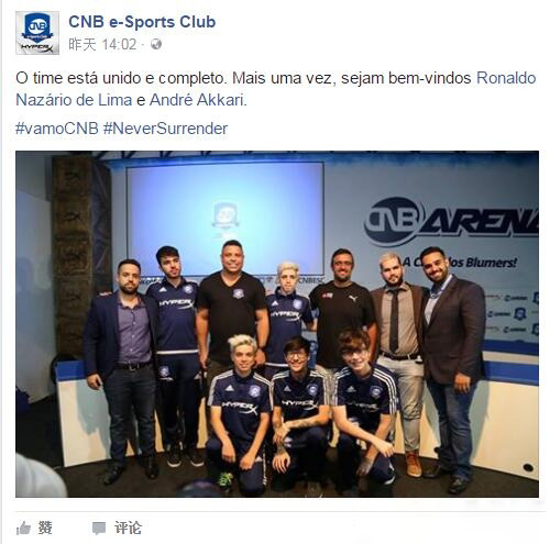 前不久知名足球明星罗纳尔多投资了巴西电子竞技俱乐部CNB e-Sports Club,这是继NBA明星后又一位体坛明星涉足电竞行业。
