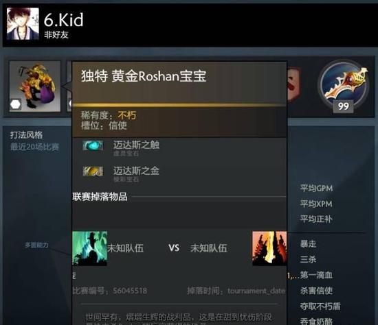 “自制”熔岩Roshan宝宝库存里还有各种独特信使,小黑纯金披风、拉比克纯金魔方之杖、禽学法师斗篷等纯金饰品应有尽有,还有拍拍牛仔套装等已经绝版的饰品应有尽有,简直就是一个小型的DOTA2饰品博物馆。