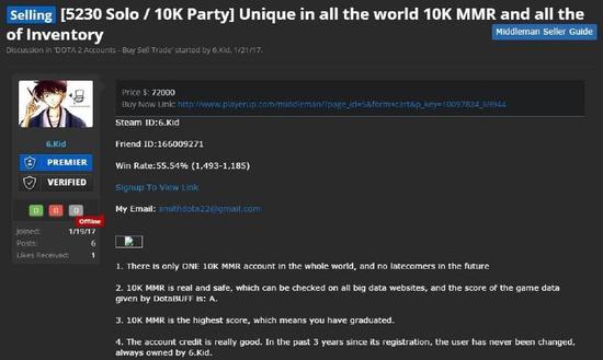 组队积分10000真实有效,可到各大数据网站查询,DOTABUFF给出的账号评级是:A(这点小编去确认了,是真的)