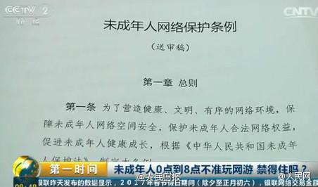 人民网消息,国务院法制办《未成年人网络保护条例》送审稿正公开征求意见。条例要求,网络游戏服务提供者采取技术措施,限制未成年人连续使用游戏时间和单日累计时间,禁止未成年人每日0:00至8:00期间使用网络游戏服务。