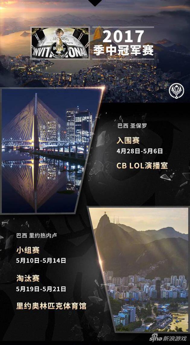 2017年4月28日至5月21日,2017季中冠军赛将在巴西的圣保罗以及里约热内卢举办。