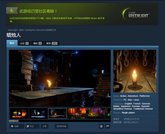 2月8日消息,我们曾报道中国独立开发者打造的解谜冒险游戏《蜡烛人》曾登陆国行Xbox One,并且收获了不少好评。而在昨天《拉住人》登陆Steam青睐之光,而仅过了一天游戏就已经获得了足够投票,将于今年第二季度在Steam上正式亮相。