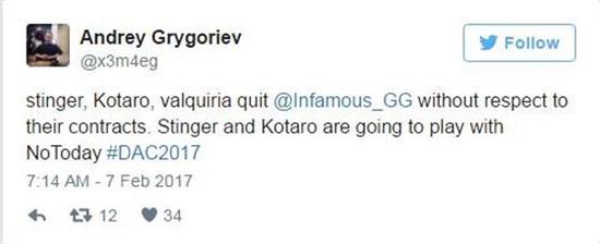 据Andrey Grygoriev和Infamous战队的CEO, Joe Ccasani Plasencia所说StingeR和Kotarō将会加入Not Today战队而Valquiria则未确定去向。