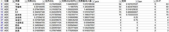 ADC的表格是目前所有位置中,登场英雄最少的。十一个英雄登场,热门选择只有五位。