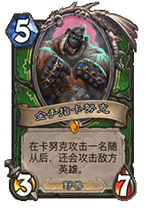 什么?你说加基森橙卡金手指卡努克?抱歉,这张卡首先国服翻译就有问题,Knuckles 的读音接近于“那考斯”,这里k是不发音的,其次我还真没在艾泽拉斯哪只猩猩中找到有叫卡努克的(知道的朋友欢迎补充)。