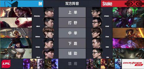 春节回来LPL再度开启,第一战是IM对阵Snake,在BP方面双方教练都费劲心思各自下套,卡蜜尔首度在LPL以辅助登场,而Snake则被下套选择炼金对诺手。开局盲僧大意入侵红BUFF被螳螂和炼金蹲点拿到一血。随后卡蜜尔则骚扰螳螂并单杀,不过由于游走随行又被螳螂杀回来。前期Snake并没有陷入被动。