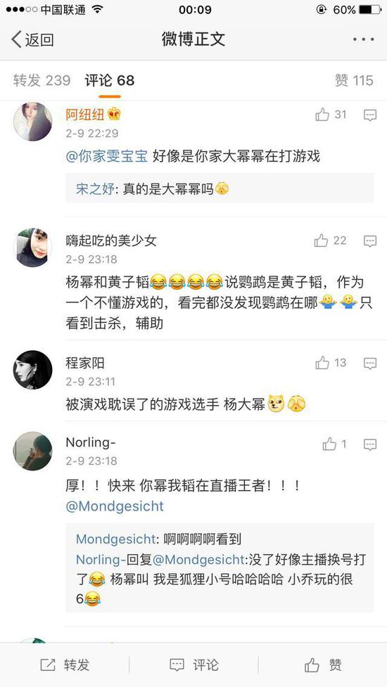 新浪游戏讯 近日,网友们发现了明星杨幂、黄子韬组队玩游戏。杨幂取名自己狐狸,用小乔玩得很溜,情人节限定皮肤可爱的飞起,上场后塔下拿下三杀。而黄子韬给自己取名鹦鹉,选定英雄牛魔王。而刚刚生完小海绵出院在家修养的Anglebaby也参与了游戏!据说ab水平一般!