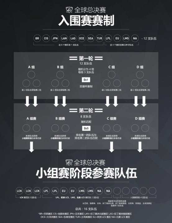 除此之外,赛制上也做了一些更加人性化的调整,新增了一个“入围赛阶段”。其实也就是往年的小组淘汰赛,只是新的赛制最大程度地保证了比赛的公平性:由于把“外卡赛区”的名额扩充到了8个,所以为了保证比赛的公平性,入围赛阶段将会是8支外卡队伍+4支主要赛区的第三号种子队伍(不包含LCK赛区)。这样能够最大限度保证外卡赛区不会像往年一样在小组淘汰赛阶段就被当成“经验宝宝”吊打淘汰。
