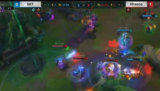其次,避免团战,或避免团战的损失,SKT和AFS在比赛中途是有一些摩擦的,但是通过熟练的牵扯让自己几乎很少做到减员,当有生力量被保留下来之后,是可以让你的随后并无法肆意掠夺你的资源和压制你的视野。