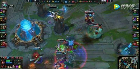 这是双方最后一波团战爆发的一瞬间截下的画面,双方在你争我夺的过程中经济和人头都几乎没有拉开很大差距,而此时SKT其实已经被破掉了高地水晶。